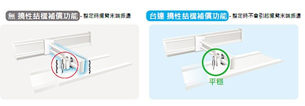 低頻擺蕩抑制 對高撓性機臺,有效抑制機構(gòu)振蕩,提升運轉(zhuǎn)效能 主動式演算抑制法則,可避免末端機臺抖動,增快運轉(zhuǎn)速度