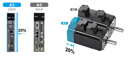 驅(qū)動器面寬與馬達長度縮小約 20% (與 A2 相比)